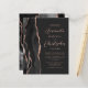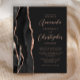Den moderna bröllopsinbjudan från elegantens lämnat kant har en svart vattenfärgad agat gräns som trimmas med faux ro guld glitter. Anpassadet kombinerar skriptet ro rosa och sans serif typsnitt på en skiffersvart bakgrund. Den omvända sidan har en matchande svartvit och ro guld-agate-design.