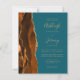 Spara kostnaden för att skriva ut och skicka separata OSA kort med den här eleganten, moderna bröllopsinbjudan för hela budgeten. Det lämnat kant har en bränd orange och en rost vattenfärgad agat gräns som trimmas med guld faux glitter. Anpassadet kombinerar handskrift, rityta och kursivt typsnitt med guld-färgad på en helblå bakgrund. Den omvända sidan ger plats för bröllop-information på en solid teal-bakgrund, tillsammans med en QR-kodgäst som kan söka igenom webbplatsen och OSAN.