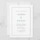 Ett känsligt grönt färg-program skapar en chic romantisk känsla för den här vintagen möter moderna bröllopsinbjudningar. Framsidan har modern typografi i en knappad uppställning, medan baksidan med diken blommigt blommar. Anpassa till din egen händelse och para med den samordnande sviten delar.
