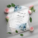 Bröllbjudan till damfärgsdammsugare med blå Blommi Inbjudningar