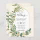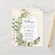 Modern grönt lämnar med guld-accentuerar bröllopsinbjudan, modern båge.