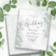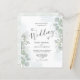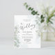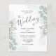 Rustic Eucalyptus bröllopsinbjudan. Med delikat löv i sage-grönt och dammblått mot vit bakgrund, all originalutformning färgad. Fyll med handskriven stil-typografi och gör det enkelt att redigera text.