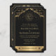 Lägg till en aning celestial magi till din stora dag! De här vintage gotiska bröllopsinbjudningarna har en tarotinspirerad design med ett strålande sol, måne, stjärnor och moln i guld mot en mystisk svart bakgrund. Anpassa den efter dina behov. OBS! guld som visas i denna design är INTE äkta folie.