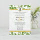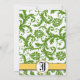 Grönt och Gult Monogram Farmhouse Blommigt Damask Bröllopsinbjudningar. Perfekt till din utomhusbondgård Barn Garden Wedding Venue.