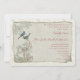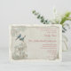 Lovebird Vintage Romantic Heirloom Elegant med en aning av Rustic Teal Love birds Sitta på en inbjudan till bröllopsmöte i Gren eller Grapevine Damask.