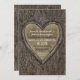 Bröllopsinbjudan till Land Rustic Oak Träd Bark - har ett levande hjärta ingraverat på tryckt ekbark träd. Baksidan har också en bakgrund med bark i träd.
