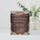Rustiska bröllopsinbjudningar tryckta på lättviktiga pappra ideal för konservativets budgetar och handleverans till gästerna. Vackert mörk land-trä med ljus och elfenbensgrädde, benvitt snöre med elegant-manustypografi. All text är redigerbar för att ändra formuleringen så att den passar dina behov. Kontakta designern via Zazzle-Chattan eller makeitaboutyoustore@gmail.com om du vill att designen ska ändras, på en annan produkt eller samordnande artiklar.