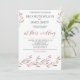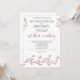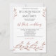 Bröllopsinbjudningar med folie av ro guld ger blommor och anpassningsbar, när ett par med sina familjer står tillsammans, tryckt på vit bakgrund