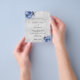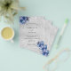 Observera att inbjudan är papper och mycket tunn. Kuvert ingår inte. Om du vill ha mer omfattande inbjudningar (samma design) kan du besöka vår butik. Faux silver metallisk tittar bakgrund dekorerad med blå blommigtar och faux glitter stoft. Anpassa och lägg till information om namn och bröllop. Svart färgad brev.