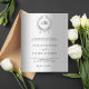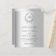 En faux silver-tittar bakgrund, dekorerad med en andedräkt. Anpassa och lägg till ditt monogram initialer, namn och detaljer. Svart text. 1 lakan = 1 inbjudan tryckt kant till kant.