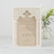 Den här fantastiska bröllopsinbjudan inspireras av den islamiska arkitekturens tradition av rik, som visar en palatsdesign, elegant uppflankerad av chevron-mönstrade kolumner i en nyanserad palett av kräm, taupe och ecru. Den invecklade snöre-liknande detaljen vid bågen, som återges i sandskugga och elfenben, tillför en lagrar av sofistikering och åberopar den tidlösa skönheten hos det invecklade plakatverk som hittats i historiska moskéer. Denna inbjudan är ett arv av elegans och arv, som ger en vänlig inbjudan till era gäster med sin blandning av kulturkonst och modern design i inslag och som utgör en etapp för ett bröllop som firar kärlek och tradition.