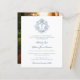 Den här budgetvänliga bröllopsinbjudan innehåller en sofistikerad design med en vintage-inspirerad vapensköld som är försedd med invecklad botanisk information och ett anpassade monogram, som erbjuder tidlös elegans i ett kompakt format. Den förfinade kombinationen av klassisk serif och flytande skript typsnitt förmedlar en känsla av formalitet och romantik, medan den mjuka blåa färg-paletten förstärker den vackra och traditionella estetiska bilden. Baksidan ger utrymme för personlig beröring med ett foto av paret, vilket ger värme och charm till detta mindre, mer ekonomiska alternativ. Perfekt för par som vill ha en överkomlig elegans utan att kompromissa med stil, denna inbjudan balanserar på ett utmärkt sätt förfining och praktisk tillämpning.