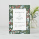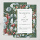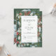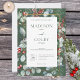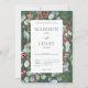 Utformningen har gräs, eukalyptus, röda och blå bär och annan grönt löv som omger en tunn faux guld ram och vit textruta. Det är en del av Vinterjulssviten Greenery Bröllop med kort som skapats av enbart Farmhouse Press.