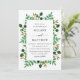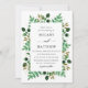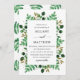 En bröllopsinbjudan med handmålad vattenfärg grenar och löv.