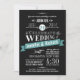 Festiv och vismisk öga-infångande svarta och vita bröllopsinbjudningar med en tealblåfon. Elegant vintage retro-stil-krittypografi med ett halvformellt konsthälsmotiv. Perfekt för trendiget i det moderna bröllop med en sofistikerad romantisk ton för den traditionella bruden och trippen. Kontakta oss om du behöver hjälp med anpassning om du behöver ytterligare utrymme för din information om bröllop.