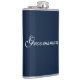 Flaska till bröllesmarskalk visas i marinblått och vitt.