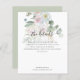 Brölljsdetaljer för Boho Eucalyptus Blommor. Ett budgetvänligt ALTERNATIV i mindre storlek, 4,5” x 5,6”. Finns i en SEMI-GLANSIGT 110 g KORTPAPPER eller en SATINERAD 80 g TUNNARE PAPPER. Kuvert är ett tillval. Anpassa enkelt texten till dina egna detaljer.
