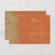 Den vänstra kanten på detta eleganta moderna brölljsdetaljkort har en design med falskt guldglitter. Den anpassningsbara texten kombinerar blek guldfärgad handskrift och kopparstick-font på en bränd orange bakgrund. Baksidan har en matchande design med bränd orange och guldglitter.