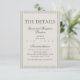 Bjud formellt in gästerna till er stora dag med detta inbjudningskort för brölljsdetaljer i gammalt pengar-manus med grön rand! Designen har ett manus-teckensnitt och tidlösa gröna ränder. Anpassa dina detaljer och den anpassade QR-koden på baksidan på Zazzle! Har du en anpassad begäran? Skicka ett meddelande till mig!