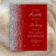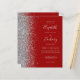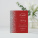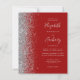 Den lämnat kant i eleganten är en modern bröllopsinbjudan från silver i glitter gräns. Med anpassadet kombineras handskrift av blek silver grått, tryckplåt och kursivt typsnitt på en mörkröd bakgrund. Den omvända sidan har en matchande röd och silver-design.