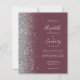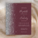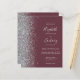 Den lämnat kant i eleganten är en modern bröllopsinbjudan från silver i glitter gräns. Med anpassadet kombineras handskrift av blek silver grått, tryckplåt och kursivt typsnitt på en mörk-burgundbakgrund. Baksidan har en passande burgundi- och silver-design.