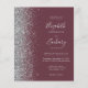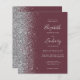 Den lämnat kant i eleganten är en modern bröllopsinbjudan från silver i glitter gräns. Med anpassadet kombineras handskrift av blek silver grått, tryckplåt och kursivt typsnitt på en mörk med röd bakgrund. Baksidan har en passande burgundi- och silver-design.