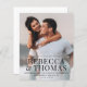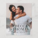 Ett modernt överlägg med stort namn och ett fullt utfallsfoto är kännetecknen för denna bröllopsinbjudan. Klicka på knappen Redigera för att anpassa designen.