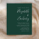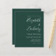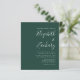 Den här enkla, moderna bröllopsinbjudan innehåller vit text på en framväxande grönts bakgrund. Lägg till bildens och bildens namn i snyggtens handskriftsgrafi och detaljerna i sans serif-teckensnitt. Den omvända sidan är en matchande skuggning av solid emerald grönt.