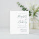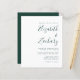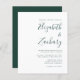 Den här enkla, moderna bröllopsinbjudan ger grönt på vit bakgrund. Lägg till bildens och bildens namn i snyggtens handskriftsgrafi och detaljerna i sans serif-teckensnitt. Den omvända sidan är en matchande skuggning av solid emerald grönt.