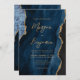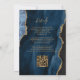 Den här inbjudan från elegant bröllop innehåller en bakgrundsbild av marinblått vattenfärgat agat som trimmas med faux guld glitter. Anpassadet kombinerar chic guld-färgad med modern handskrift, tryckplåt och kursivt typsnitt. På baksidan finns utrymme för information om bröllop på en matchande blå agate-bakgrund, tillsammans med en QR-kodgäst som kan söka på webbplatsen och OSAN, vilket sparar kostnaderna för utskrift och utskick av separat OSA kort.