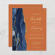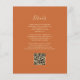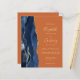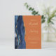Den moderna bröllopsinbjudan från elegantens lämnat kant har en marin blå vattenfärgsagat gräns som trimmas med faux guld glitter. Anpassadet kombinerar handskrift, rityta och kursivt typsnitt med guld-färgad på en brinnande orange. På baksidan finns det utrymme för information om bröllop på en solid, bränd orange-bakgrund, tillsammans med en QR-kodgäst som kan söka igenom webbplatsen och OSAN.