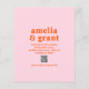 Modern bröllopsinbjudan i stil-budgeten med en enkel och minimal layout med namn i ett glupskt återbildsteckensnitt. Nedan visas din händelseinformation i ett sans serif-teckensnitt tillsammans med din QR-kod (valfritt) för gäster som söker igenom och enkelt kan OSA online. Det ljusa färg-systemet är en pulserande orange och rosa. QR-koden kan tas bort och typsnitt / färg kan ändras i designredigeringsverktyget för verktyg. OBSERVERA: Kuvert ingår INTE.