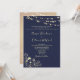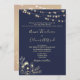 Elegant, modern, rustik, chic, formell inbjudan till marinblått bröllop med guld gyldad blommigt snöre och sträng ljus.