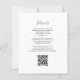 Den här romantiska bröllopsinbjudans lämnat hand kant har en blommigt av dammig blåa blommor och grön . I anpassadet kombineras handskrift, tryckplåt och kursivt typsnitt i dammblått och kol-grått på vit bakgrund. Lägg till ytterligare information på baksidan tillsammans med en QR-kod som hjälper dina gäster att besöka webbplatsen för bröllop.