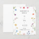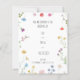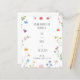 Denna charmerande och elegant bröllopsinbjudan till blommigt är perfekt för par som vill skapa en romantisk och vismisk stämning för sin speciella dag. Utformningen har en delikat vattenfärgsfärgad blommigt gräns med mjuka pastellnyanser, inklusive rosa, blått, gult och lila blommor, kompletterad med grön som ger en naturlig beröring. Den rena, minimalistiska layouten säkerställer att fokus ligger på detaljerna i inbjudan, samtidigt som man bibehåller en inbjudande och sofistikerad estetik.