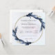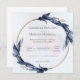 Den här sofistikerade bröllopsinbjudan har en cirkelformad blommigt gräns med mörk blått löv, vilket ger designen lite elegans. I den centrala texten meddelas Rachelle Beaudry och Morgan Maxwell giftermål, som inbjuder gäster till ceremonin i St. Alaye Church lördagen den 17 augusti kl. 17.00, följt av en mottagning på L'Ewele Hotel. Det rena, serif-teckensnittet mot en ljus bakgrund ge inbjudan till ett klassiskt och tidlöst överklagande.