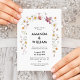 En vackert designad bröllopsinbjudan med ömtåliga vattenfärgade blommor i mjuka pastelltoner. Elegantens typografi och minimalistisk utformning skapar en sofistikerad och romantisk känsla, perfekt för alla bröllop firande. Fullständigt anpassade med namn, datum och handelsplats.