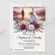 Bröllopsinbjudan till elegant Blommigt med Bride och Groom vid Sjö och Ro guld, Burgubdy och Vit ros