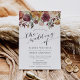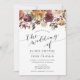 Elegantens bröllopsinbjudningar eller fall- eller vinterbröllop visar dina uppgifter som fylls av en spray av ro, morsa och grönt i rustik höst-färg, inklusive persikor, elfenben, , burgundi och grönt.