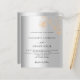 En modern, elegant och minimalistisk bröllopsinbjudan. Faux silver tittar bakgrund som dekorerats med faux guld blommigt. Anpassa och lägg till information om namn och bröllop. Svart färgad brev.