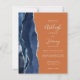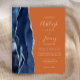 Den moderna bröllopsinbjudan från elegantens lämnat kant har en marin blå vattenfärgsagat gräns som trimmas med faux silver glitter. Anpassadet kombinerar handskrift, tryckplåt och kursivt typsnitt i ljust silver grått i orangens bakgrund. Den omvända sidan har en matchande marin blå och silver-agate-design.