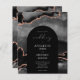 Denna moderna utformning har en svart bågform på en bakgrund av svart vattenfärgad agat som trimmas med ro guld faux glitter. Ord "bröllop" visas i ett vitt skript i elegant. Anpassa inbjudan med namn till bruden och brudgummen i en kombination av serif- och sans serif-typografi och bröllop-detaljer i kursiv stil.