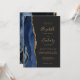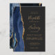 Den moderna bröllopsinbjudan från elegantens lämnat kant har en marin blå vattenfärgsagat gräns som trimmas med faux guld glitter. Med anpassadet kombineras handskrift, tryckplåt och kursivt typsnitt med guld färgad på en mörk grått-bakgrund. Den omvända sidan har en matchande marin blå och guld-agate-design.