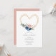 Vackra blåblommor och rosa blommor i ett söt guld hjärta. Baksidan är en söt, korallblandning för att matcha en blomma på inbjudan. Detta är en fantastisk inbjudan från avslappnad till ren elegans. Så söt.