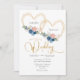 Brölloksinbjudan till elegant Blue Guld Heart Blom Inbjudningar