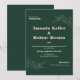 Fira din speciella dag med den här eleganten, en modern bröllopsinbjudning med minimalistisk löv-konst över en djup grönt bakgrund. Perfekt för contemporary trädgårdsbröllop eller sofistikerat firande med botaniskt tema.
