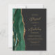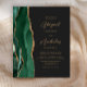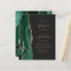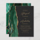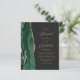 Den här elegantens lämnat kant har en modern bröllopsinbjudan och en framväxande grönt vattenfärgsagat gräns trimmad med faux guld glitter. Anpassadet kombinerar skript av guld-färgad och sans serif typsnitt på en svart bakgrund. Den omvända sidan har en matchande framväxande grönt och guld agate-design.