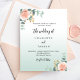 En vit chic och gröntens övertoningsbakgrund. Dekorerad med blommigtar för guld och rosa, blommor från rosor och vattenfärgad eukalyptus löv, spriter, grönsaks- och faux ro sprigs. Anpassa och lägg till namn och information. Bakåt: vit bakgrund och övertoningsbakgrund för grönt. 1 lakan = 1 inbjudan tryckt kant till kant.