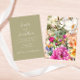Ange tonen för ett romantiskt vår firande med den här inbjudan till blommigt om grönt. Framsidan har modern manustypografi i mjuk grönt, medan baksidan visar en pulserande blomning i trädgårdblommor. Anpassa med dina uppgifter om bröllop för att skapa ett vackert första intryck för dina gäster.
