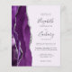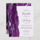 Den lämnat kant i eleganten i den moderna bröllopsinbjudan har en lila vattenfärgsagat gräns som trimmas med faux silver glitter. I anpassadet kombineras handskrift, tryckplåt och kursivt typsnitt i grått med kol mot blekens lila. Den omvända sidan har en matchande lila- och silver-agate-design.